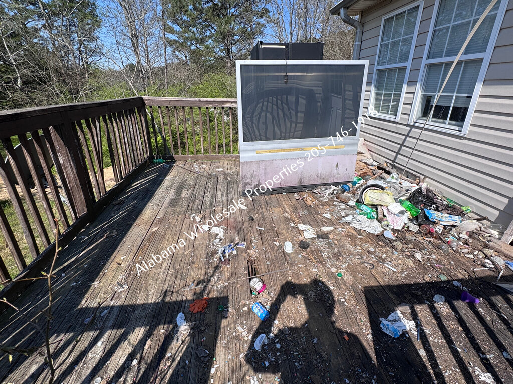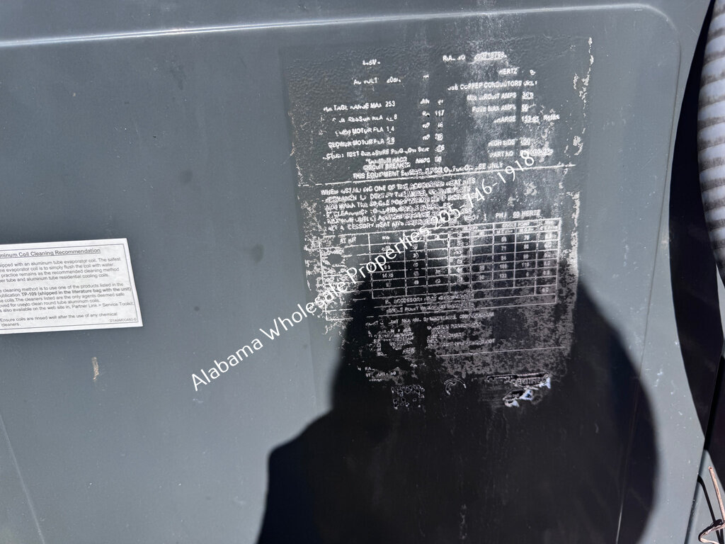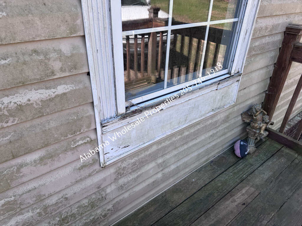 The roof appears to be in good condition and was reportedly replaced in 2015. HVAC system age is estimated around 2018 (serial sticker faded). Siding needs cleaning, and the garage will need new siding. The back deck needs to be rebuilt, and the front deck requires paint. Trim needs fresh paint, with some window rot and door frame rot present.