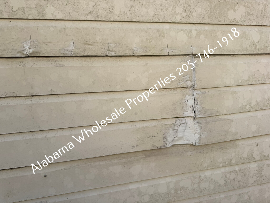 Exterior: The exterior needs siding repairs, fresh paint, a new door, HVAC work, and roof work.